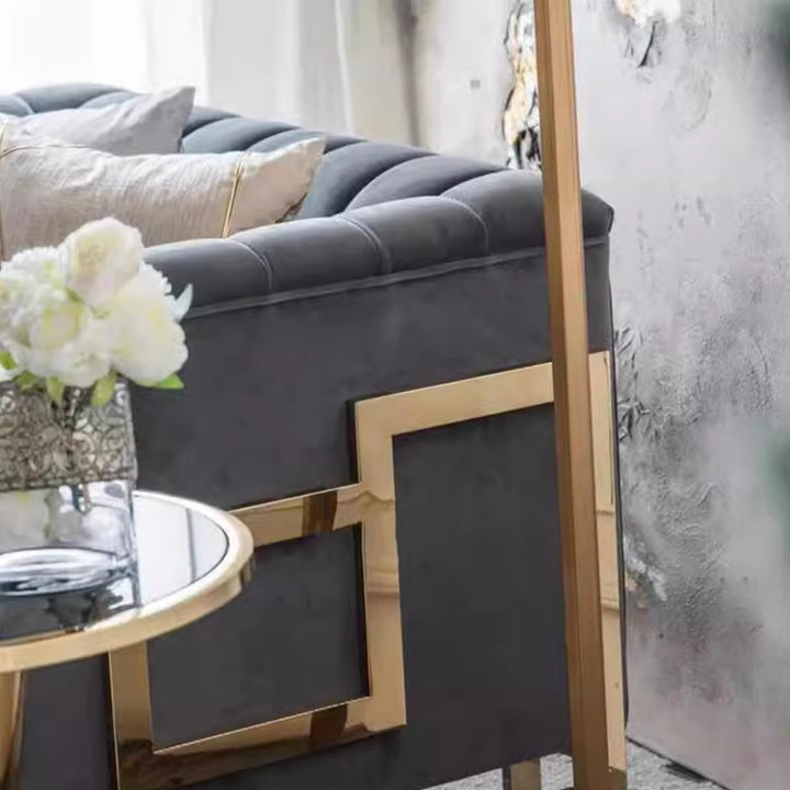 Elevate your living room with a piece that embodies true luxury. Featuring high-density foam infill for superior back and seat support, this sofa is built with a robust pine wood internal structure for long-lasting durability. The silky velvet upholstery adds elegance and exceptional comfort, while the stainless steel frame offers a touch of sophistication. Customize the color to perfectly match your classic or Victorian decor. Complete the look with our matching coffee table for a cohesive and stylish ensemble.