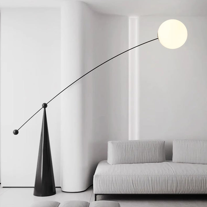 Create the perfect ambiance for your evenings with our Masdio minimalist standing lamp. Its sleek black metal rod extends seamlessly from the base to the lampshade, providing a modern and sophisticated look. The lampshade, a round ball of light, offers 360 degrees of tricolour illumination, adding a unique touch to your space. This clean-lined and unassuming design is ideal for modern, minimalist, or hotel-inspired interiors. Illuminate your surroundings with elegance and complete the look by pairing it with our contemporary wall art for a cohesive and stylish aesthetic.