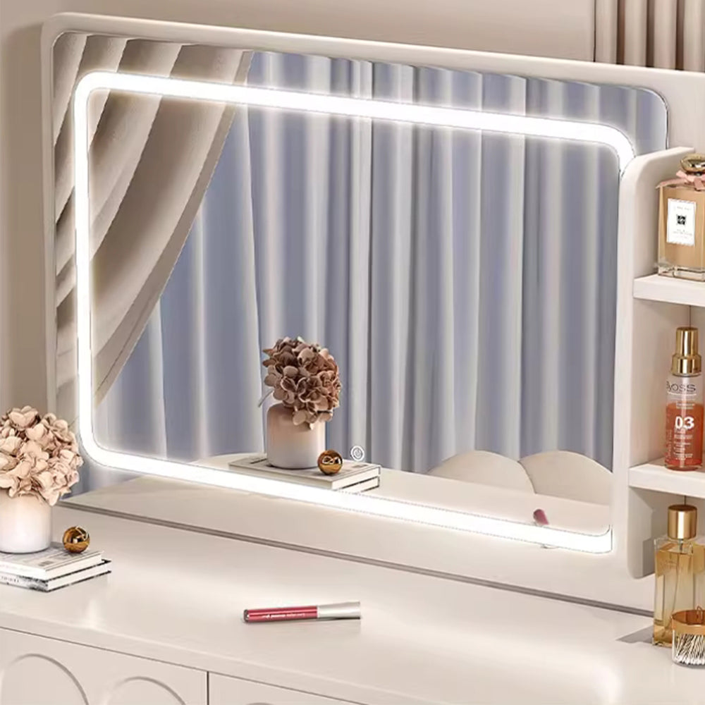 Set in matte ivory, our EDITH dressing table comes with a wide LED vanity mirror, shelves, chest of drawers and a matching chair. An all-inclusive dressing set that ensures your beauty products and accessories are kept away neatly. Illuminate your day and night routine while adding a hygge or minimalist accent to your walk-in closet or vanity area.