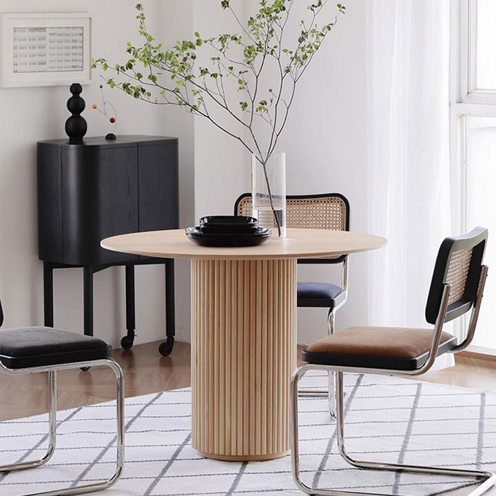 Enhance your dining area with our thoughtfully designed Nordic Minimalist Solid Wood Dining Table. With its sleek and round shape, this table effortlessly fits into nearly any room, adding a touch of elegance and functionality. Crafted with high-quality solid wood, it ensures durability and longevity. Whether it's a family dinner or a gathering with friends, this dining table creates a warm and inviting atmosphere. Elevate your dining experience with this stylish centerpiece that seamlessly blends with any interior decor.