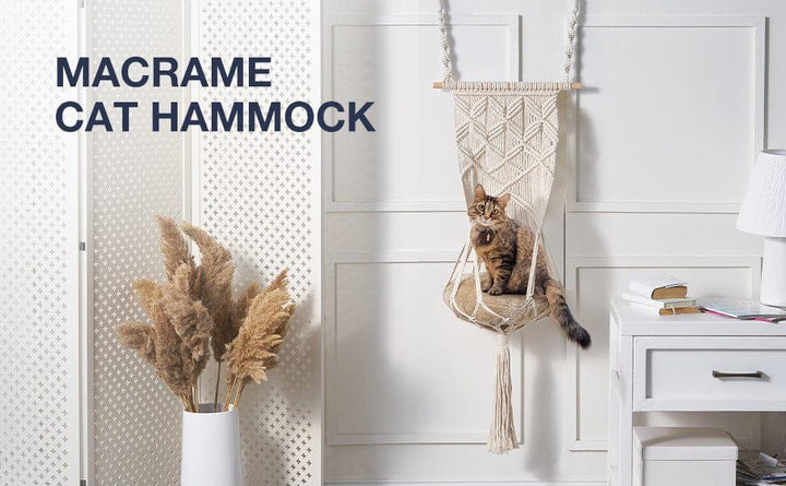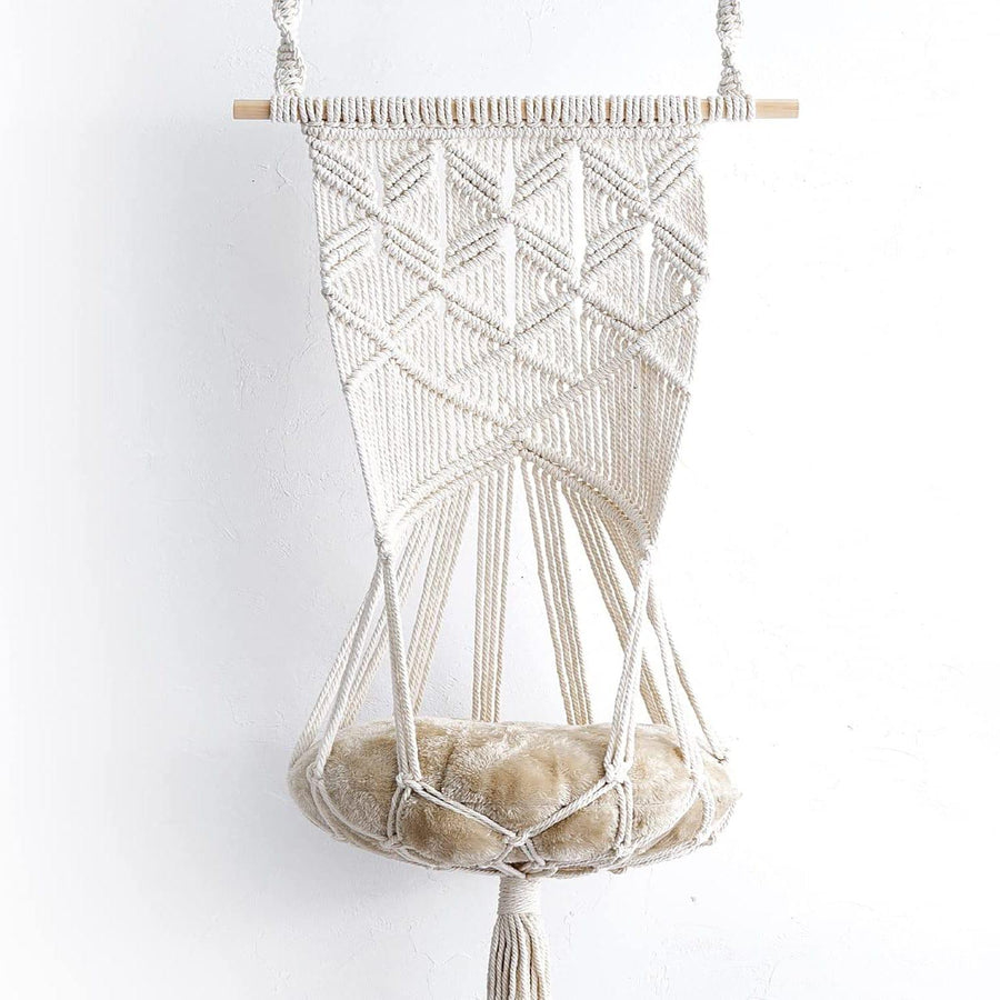 Macrame Cat Hammock! One such stylish piece of gift, Hand-woven just for your cat to hang out in the house also can be a beautiful macrame Boho wall art.