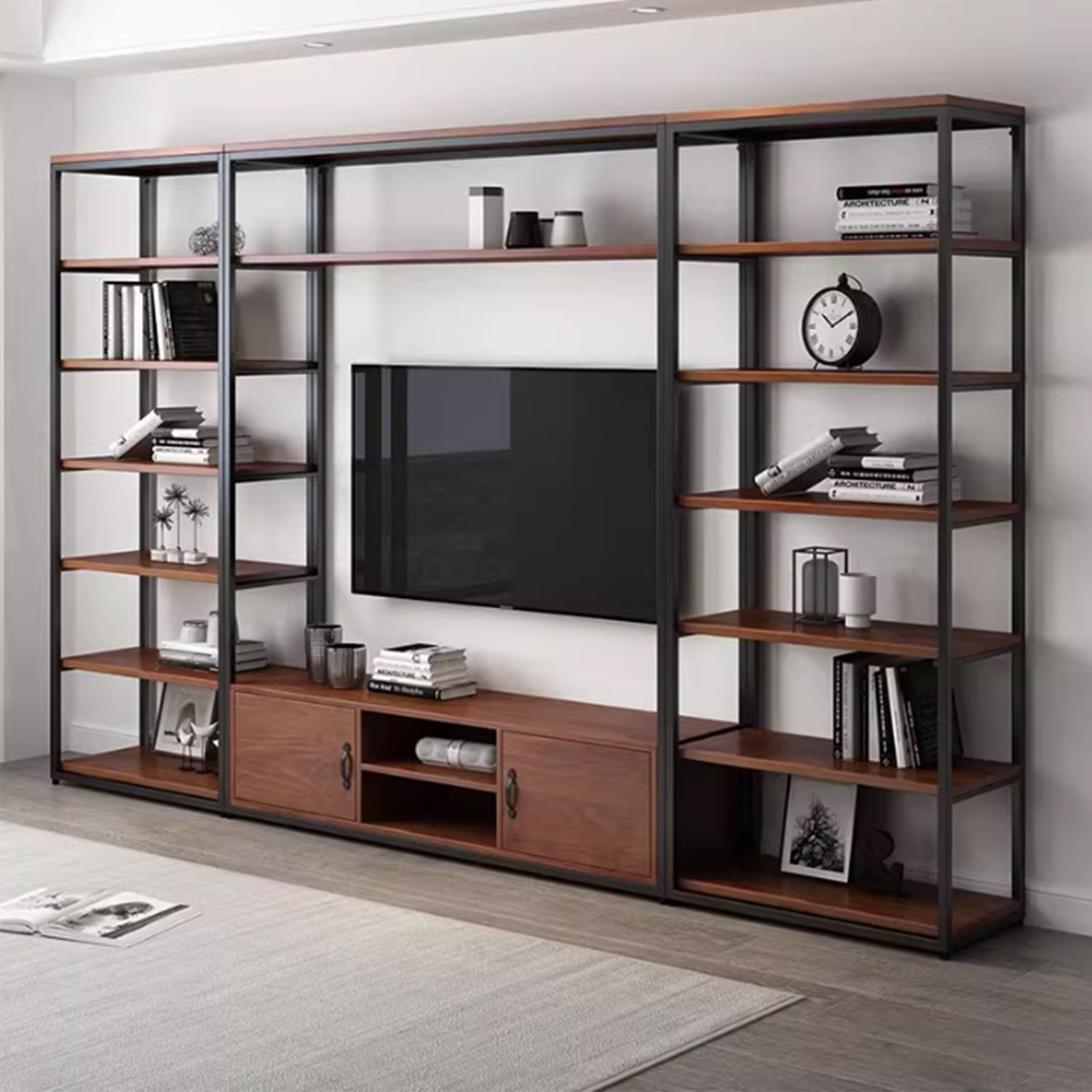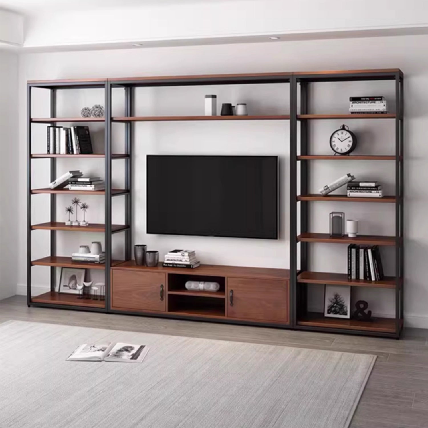 Our multifunctional BONITA shelf is perfect for compact or spacious homes looking for an organisational unit. Featuring a TV compartment, it doubles as a sleek TV feature wall. The bottom cabinet offers ample storage, while the pine wood shelves provide a rustic touch. Crafted with a powder-coated iron frame, this versatile piece serves as a library, display unit, and media console. Its unique blend of form and function makes it a standout piece of furniture. Add a touch of industrial chic to your decor with this functional and stylish shelf, ideal for cozy apartments or spacious living rooms.