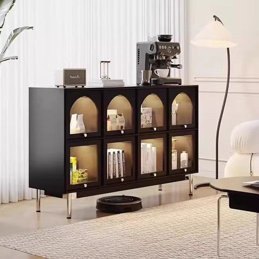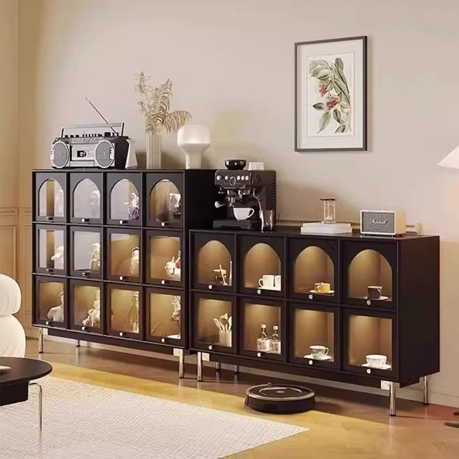 Crafted from pine wood, this display cabinet is both durable and elegant. Featuring niches and a spacious surface, it offers layered organization for all your dining or display essentials, keeping everything visible and accessible. The wide surface accommodates small appliances, meeting various needs with ease. Glass doors ensures safety, while the in-built LED light illuminates your collection. Enhance your office or dining area with the timeless appeal of this display cabinet.