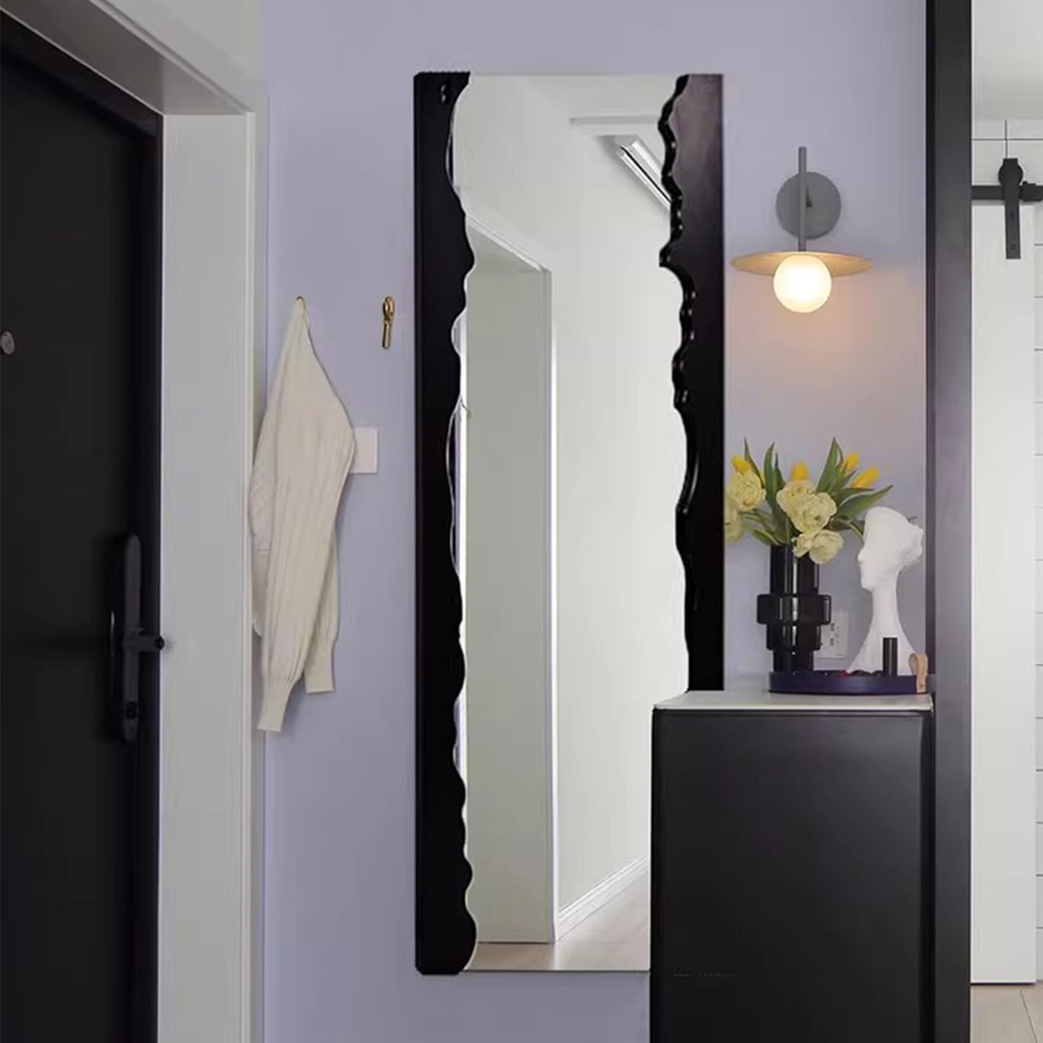 Enhance your living space with the CERA modern full-length mirror, carefully designed with a border resembling split wood. This unique design invites the beauty of nature and complements modern, eclectic, and contemporary interiors. Whether it's in your bedroom, hallway, or living room, this accent mirror offers both functionality and a modern aesthetic, making it a versatile addition for those who seek a sleek and practical mirror to complete their space.