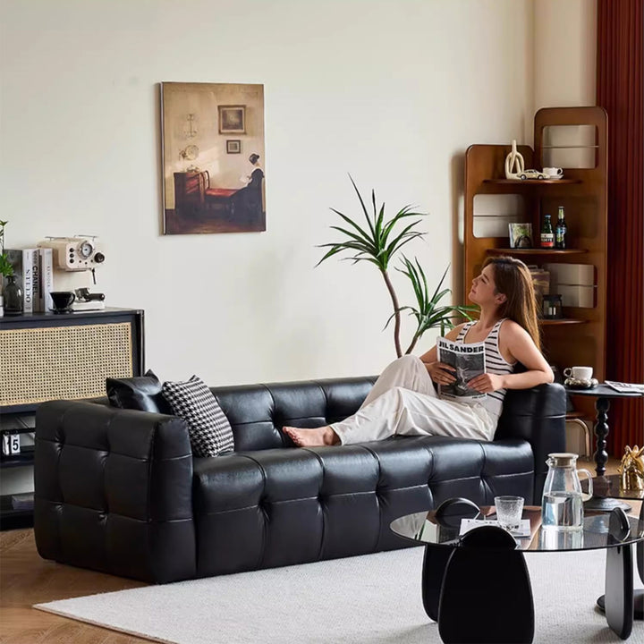 Immerse yourself in luxury with our Masdio Modern low seating couch, featuring detailed tufting and complete leathaire upholstery. Built with a robust pine wood internal frame and high-density foam filling, this sofa ensures both comfort and durability. Its sophisticated yet welcoming design makes it an ideal addition to home and office environments, adding a contemporary touch to any modern space.