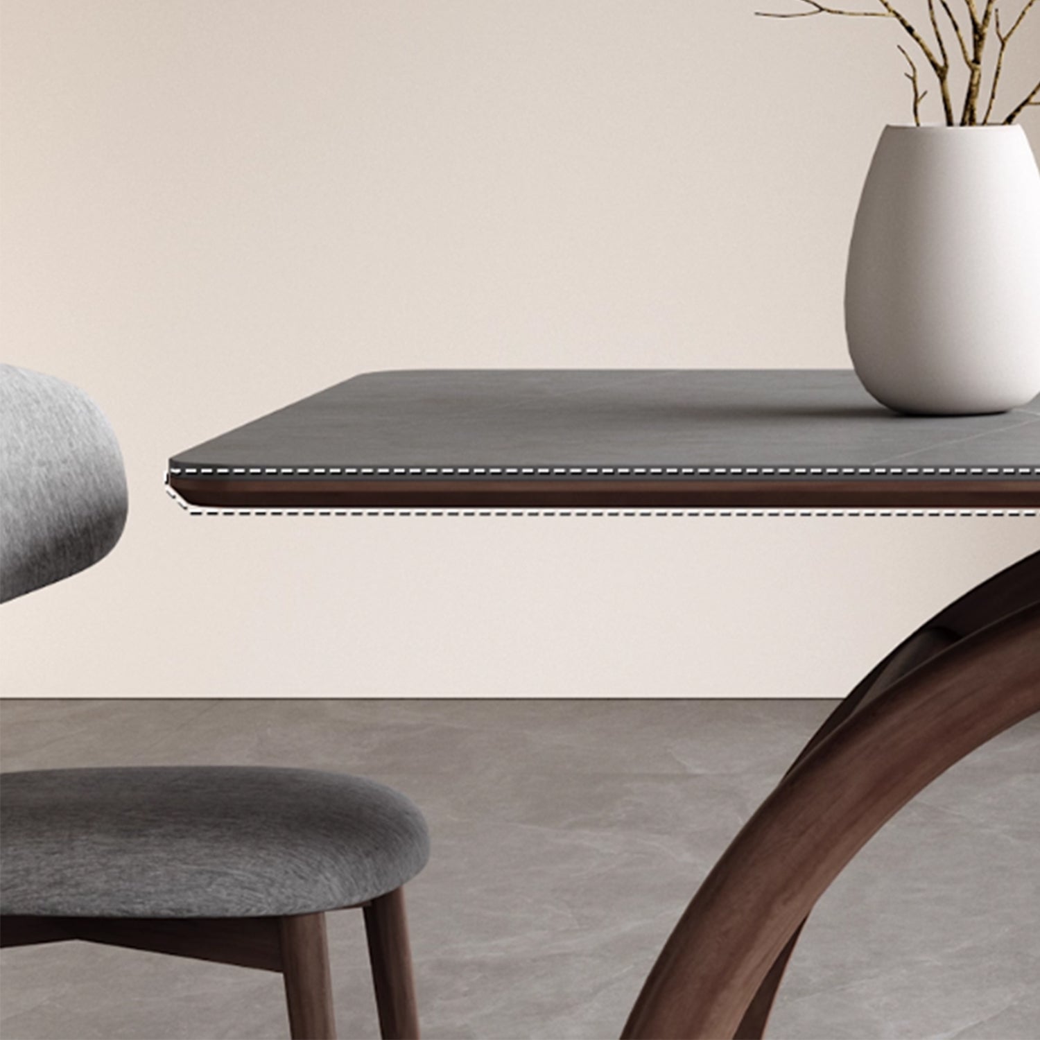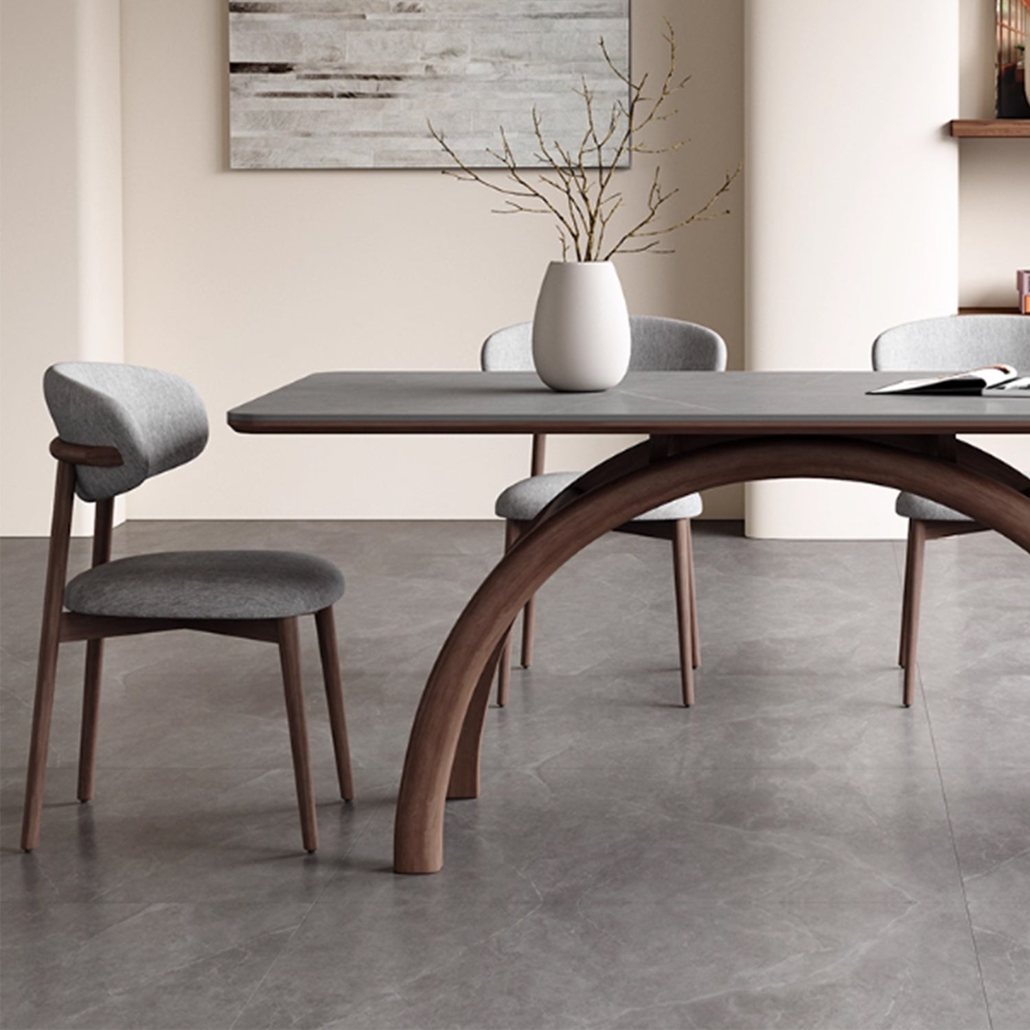 Supported by attention-grabbing arch legs crafted from pine wood in a rich walnut stain, our CARL dining table is a stunning addition to any dining space or home office. Its highly durable table top boasts water, stain, and heat resistant properties, while the gently bevelled corners ensure safety. This roomy table will be the center of get-togethers and conversations. Complete the countryside look with our KORO leather dining chairs.