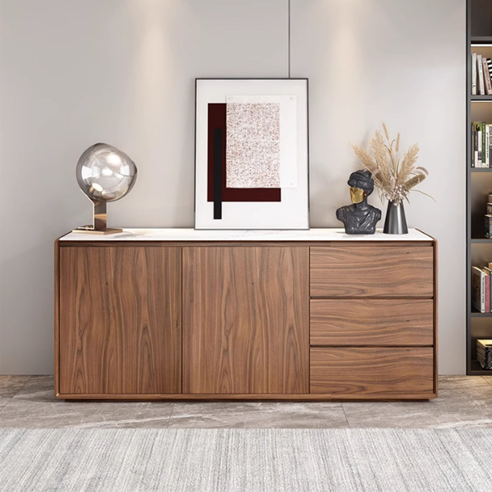 Crafted from durable multilayer board with a rich walnut laminate and a durable sintered stone surface, our SYNNE sideboard is a multifunctional piece offering practicality with its combination of drawers and doors, and providing ample storage space for your essentials. Whether placed in your dining room to store tableware or in your living room to display decorative pieces, this sideboard will complement any interior styles. Its sleek design and premium materials make it a versatile addition to your home or office, enhancing your decor while offering organized storage solutions.
