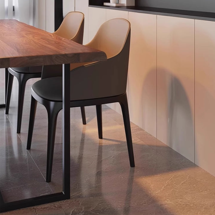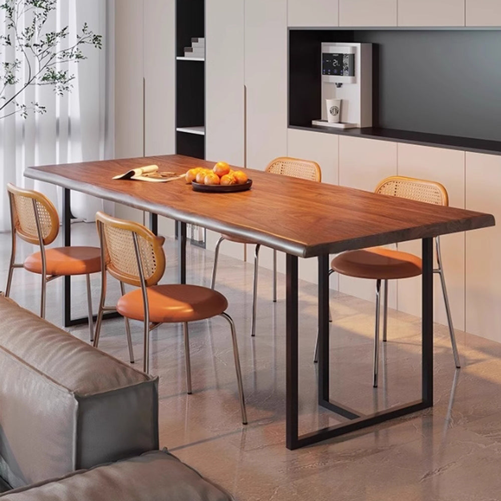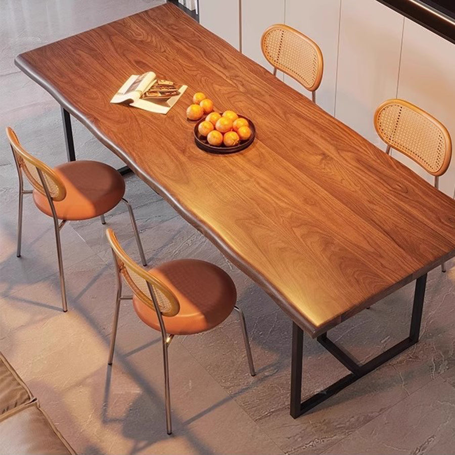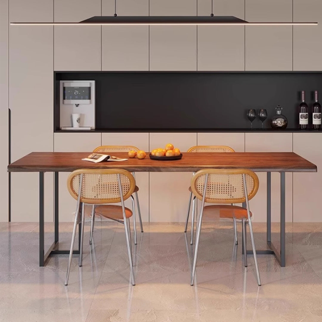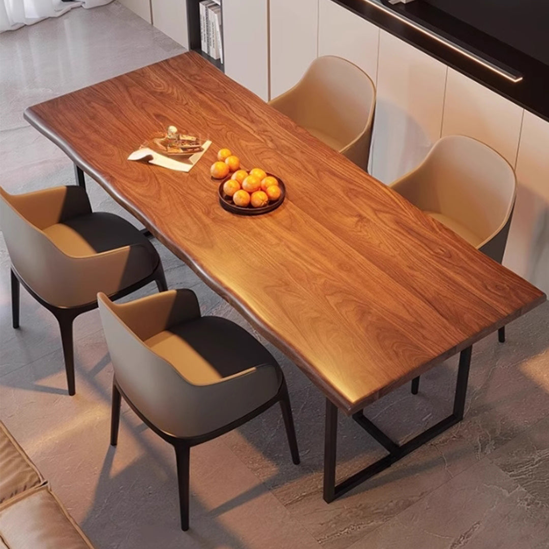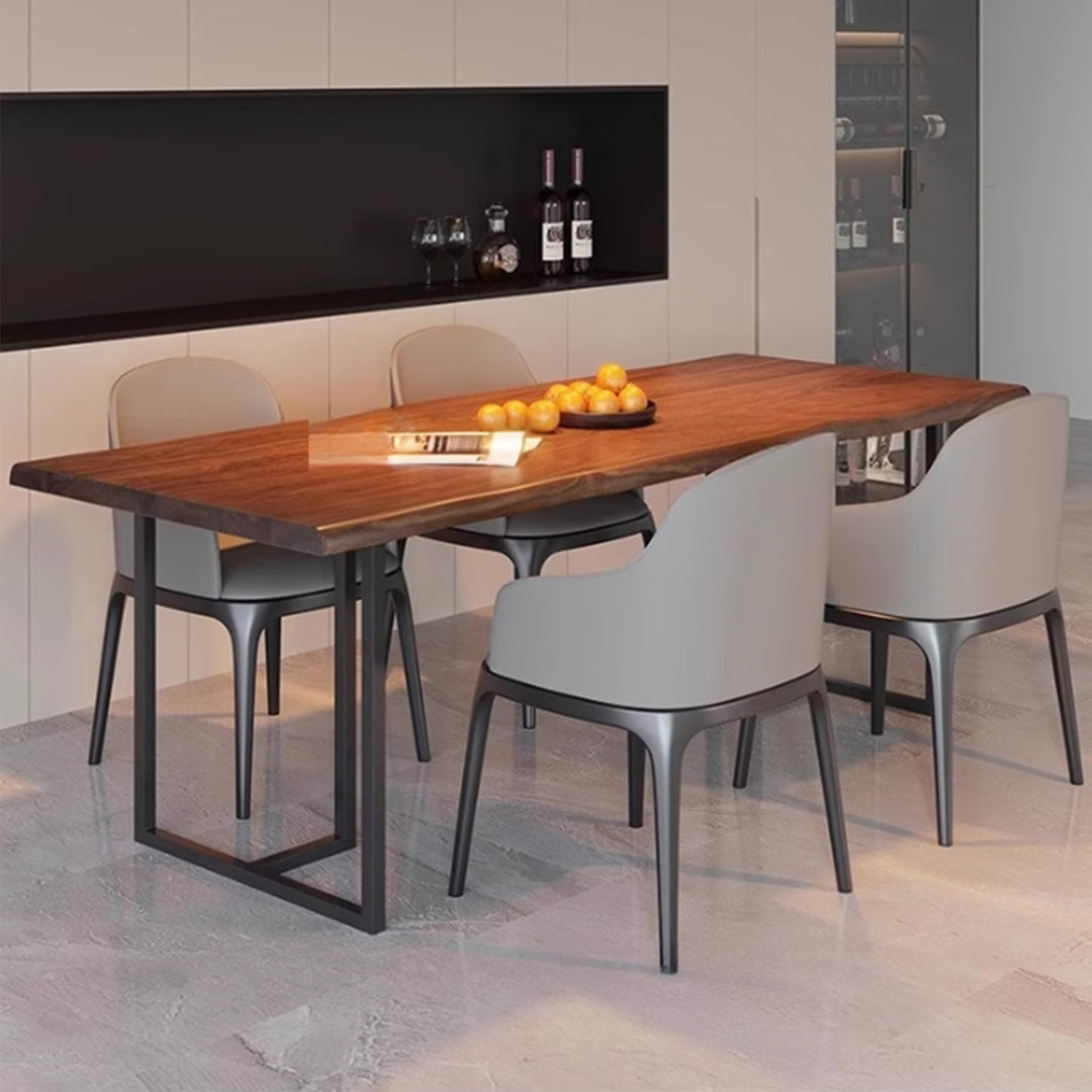 A sleek and versatile design, our PAREN dining table features a thin solid wood table top with a natural edge and slender metal legs, this piece exudes a sense of minimalist sophistication. Perfect for modern living rooms, home offices, or dining spaces, this understated design makes it a versatile addition to any setting. The combination of natural wood and metal creates a striking contrast, adding a touch of urban chic to any industrial, rustic, or cottage decor.