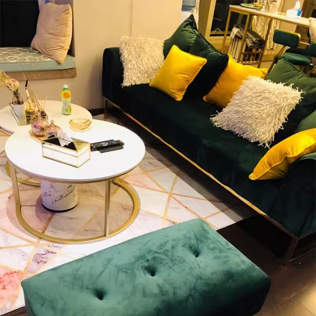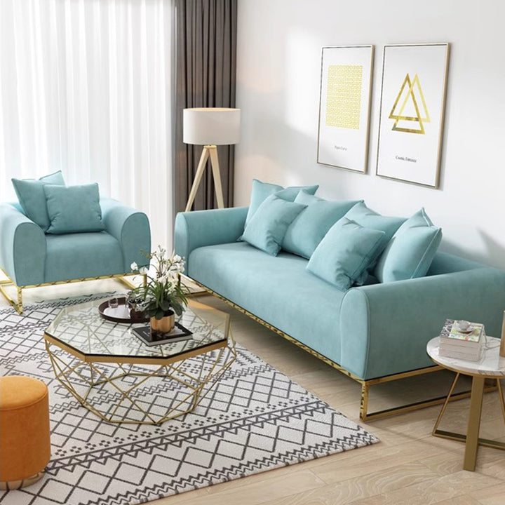 A home reflects your style and taste, and the Masdio Modern sofa design epitomizes timeless elegance with its clean lines and premium materials. Draped in luxurious velvet and supported by a sustainable wooden frame, the sofa rests on a slender gold-tone metal base. The seats and cushions, filled with semi-firm foam, offer plush comfort. Available in three sizes, the Masdio Modern sofa allows you to create a seating arrangement that exudes grandeur while remaining inviting and cozy.