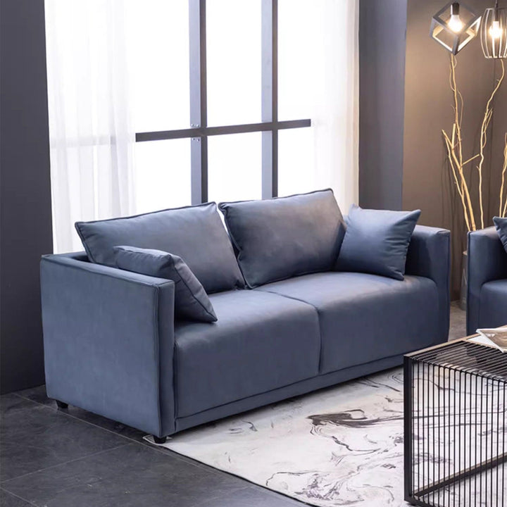 Crafted from sturdy and water-resistant leather with foam padding and a sturdy pine wood frame, the Masdio Modern sofa is available in one, two, and three-seater options, in a range of colors. With its plush cushions and comfortable mid-height backrest, it’s ideal for cozy family get-togethers or binge-watching sessions. Select a hue that complements your decor style, whether it’s contemporary, industrial, traditional, or unique.