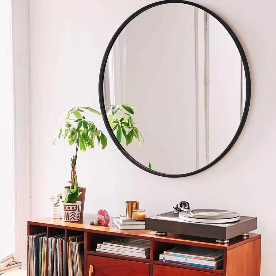Add modern elegance to your space with our large round wall mirror, featuring a sleek stainless steel frame. This accent mirror is perfect for creating a focal point in any room, and strategic placement can enhance the sense of space and light. Ideal for living rooms, bedrooms, or hallways, our round mirror adds a touch of sophistication and style. Use it to create a beautiful reflection and add depth to your modern or contemporary space.