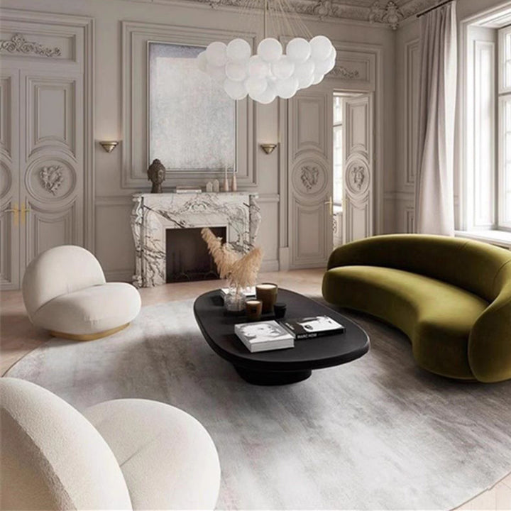 Center your living space in style with our GYLEN coffee table, shaped in a soothing and eye-pleasing oblong outline. Crafted from oak wood and finished in matte black, this coffee table works as a backdrop to bring out the colours of your couch and anchor pieces, or as an accent piece for any modern, minimalist, or noir interiors. Complete the luxurious look with our SKYLAR curved sofa and AKIN boucle armchairs.