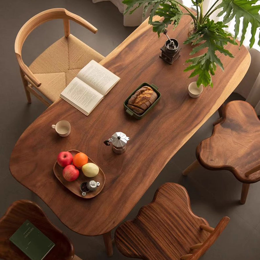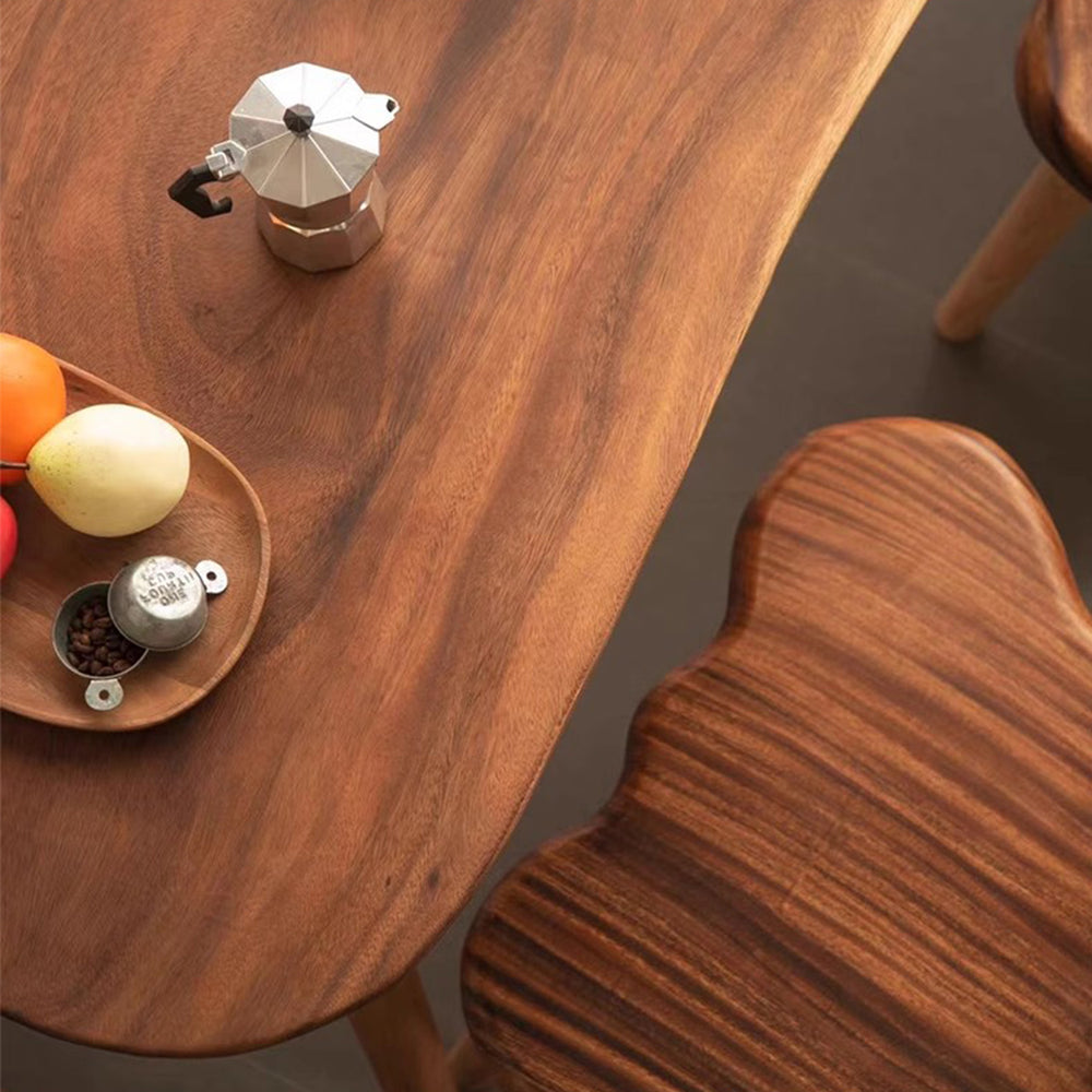Crafted from high-quality walnut wood, our MOSER table features the stunning grains of walnut wood in a deep and warm walnut hue. Its natural wavy edge makes it a striking centerpiece for any dining space. Effortlessly enhance your room’s aesthetic while discovering the beauty of its natural materials. Illuminate your conversations around this exquisite dining table.