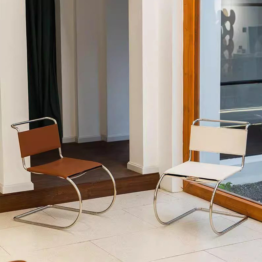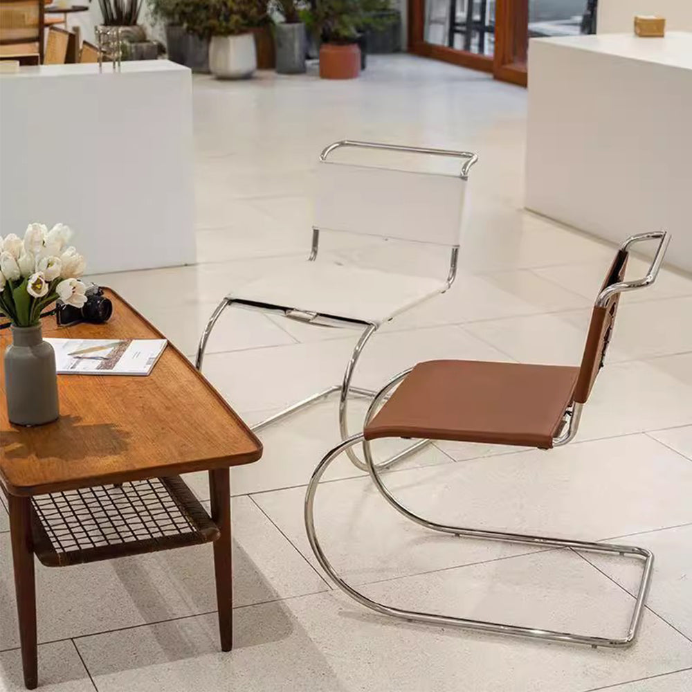 Designed with a stainless steel wire frame, our JOHN dining chair boasts a backrest and seat crafted from saddle leather, providing both style and comfort. This versatile chair is ideal for dining, office use, or as a chic accent chair. Whether gathered around a dining table, enhancing your workspace, or as an accent piece, it effortlessly complements a range of interior styles, from modern to minimalist.