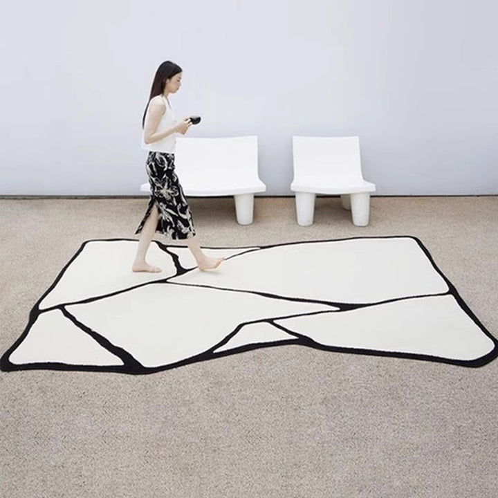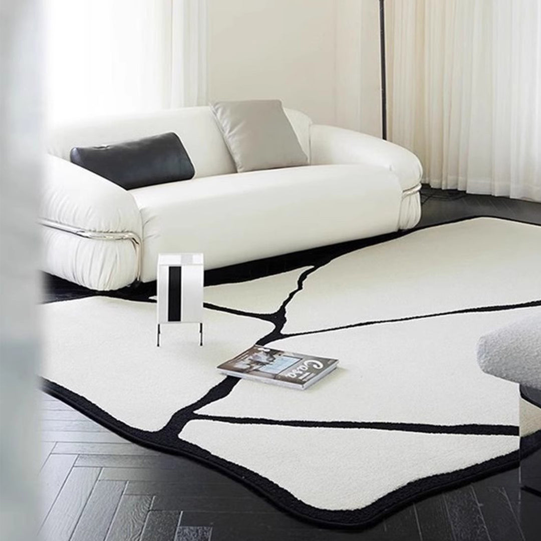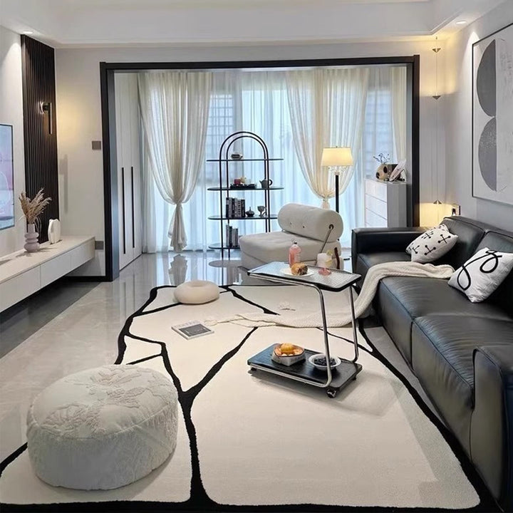 BESTUE modern black and white rug features contemporary designs with a monochromatic color scheme. The contrast between black and white creates a sleek and sophisticated look, making it a versatile choice for various interior styles.