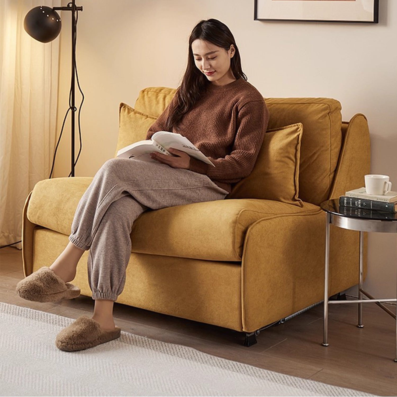 Experience the IVANNA Scratch Resistant Sofa Bed With Mattress, a blend of comfort and practicality. Made with water and stain repellant, scratch-resistant suede fabric, it features high resilience foam cushions and a robust galvanized metal frame.