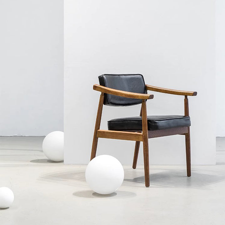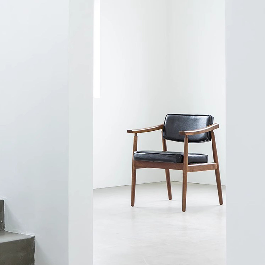 Make a statement with this bold and versatile dining chair that complements any dining table or serves as an extra seat in the living room. Supported by four tapered legs, two of which elegantly splay out, this chair boasts dramatically curved arms for an eye-catching design