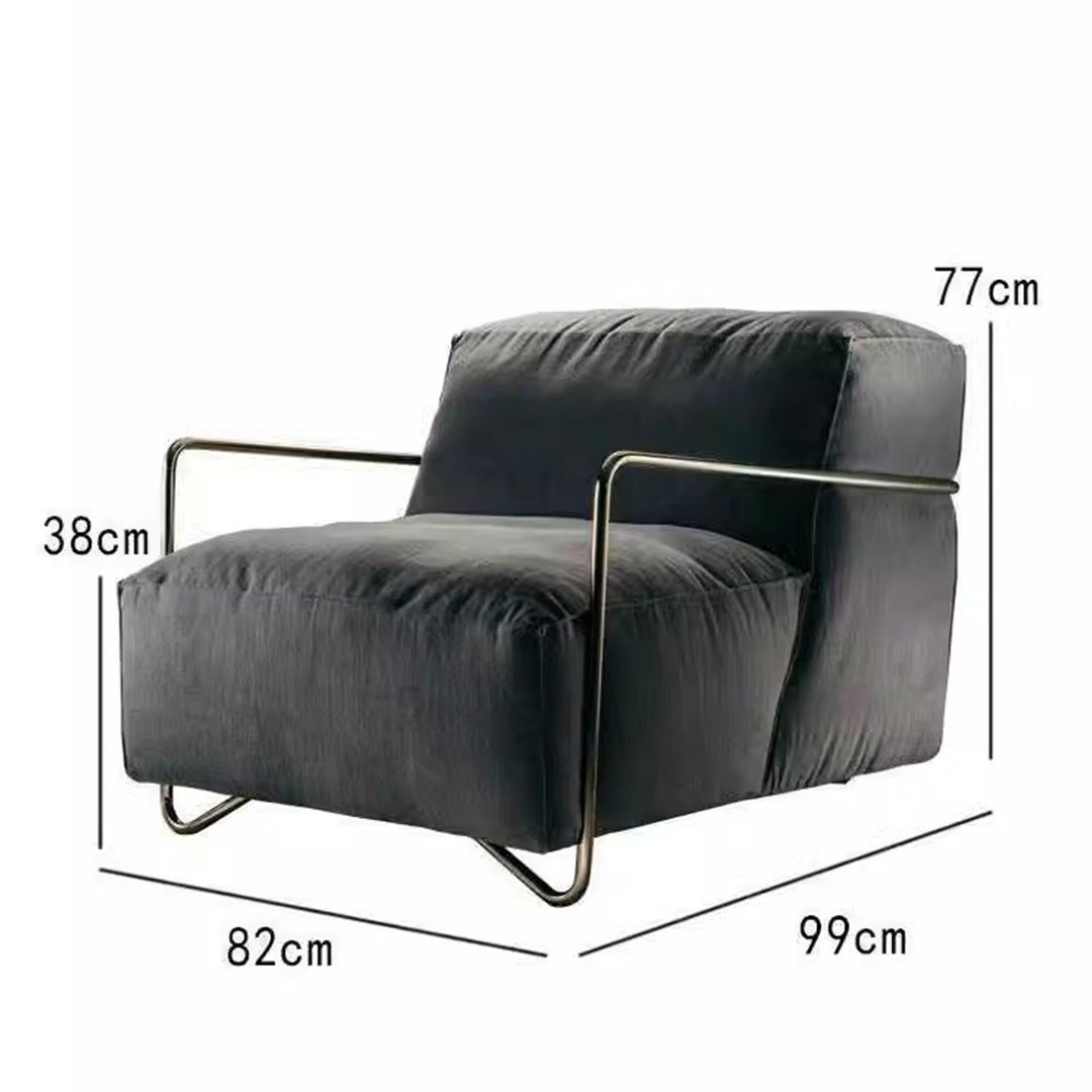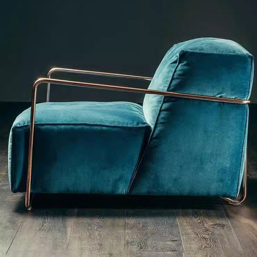 Experience glowing style and ultimate comfort with this compact and exquisite accent armchair, perfect for your lounge or living space. The chair showcases an elegant design, serving as the ideal perch for relaxation. Its striking stainless steel metal frame boasts a streamlined design, adding a touch of glamour to your home and seamlessly fitting into any contemporary aesthetic.