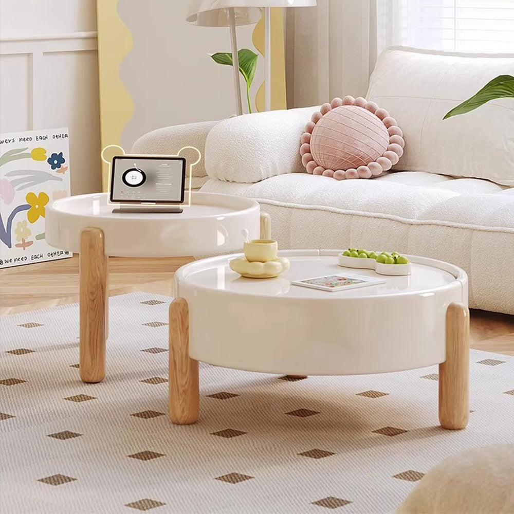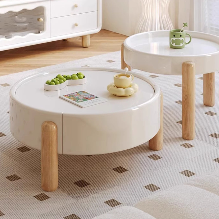 Embrace the simplicity of Japandi style with our TALOR coffee table, expertly crafted to bring warmth and serenity to your living room. The milky white finish adds a soft, calming touch, while the pine wood legs in light oak finish provide a natural and sturdy base. The center table features a deep drawer, perfect for storing books, magazines, or remotes, keeping your space organized and clutter-free. The round shape and minimal design make this coffee table perfect for homes with children and fur kids. Its understated beauty and functional design make it a perfect addition to your Japandi-inspired home.
