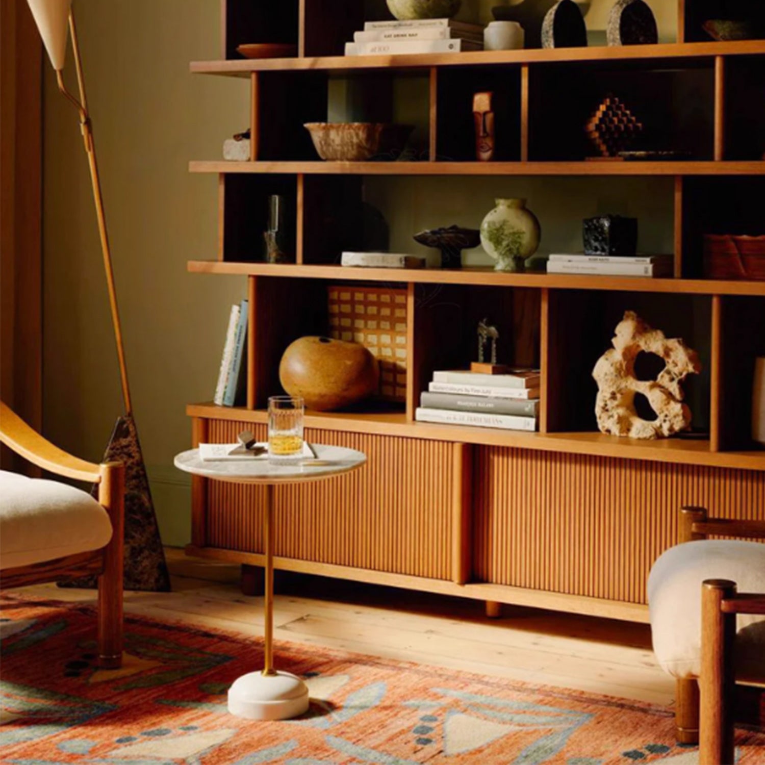 Bring warmth and character to your space with our RINGER display shelf, beautifully crafted from American oak wood and finished in a rich teak wood stain. Perfect for showcasing decorative items, books, or treasures, this shelf offers ample display space. The sliding cabinet door at the bottom features tamboured doors, providing a unique and functional storage solution. Crafted from high-quality oak wood, this display shelf is a sturdy and stylish addition to any room, adding a touch of classic elegance to your home.
