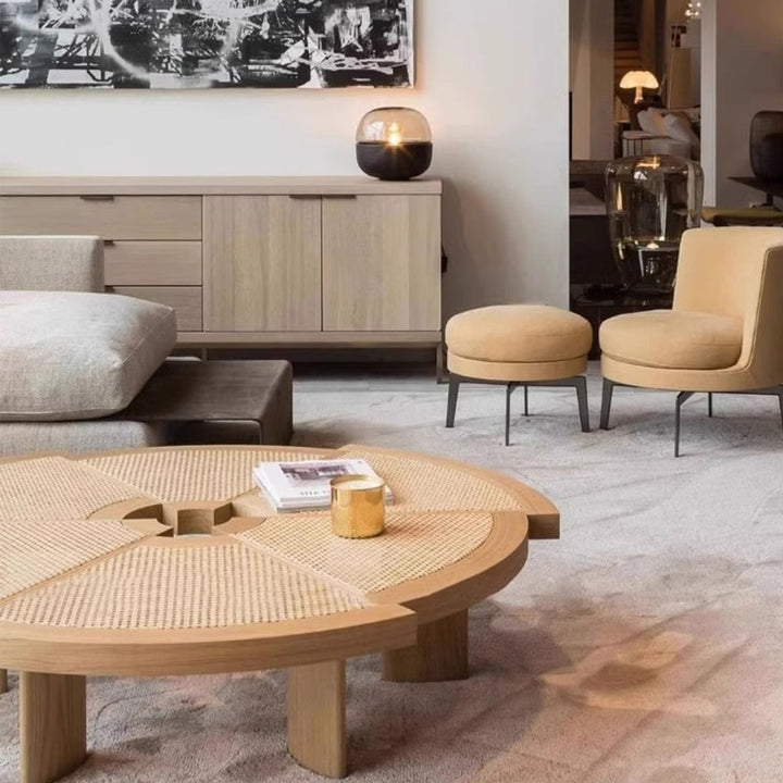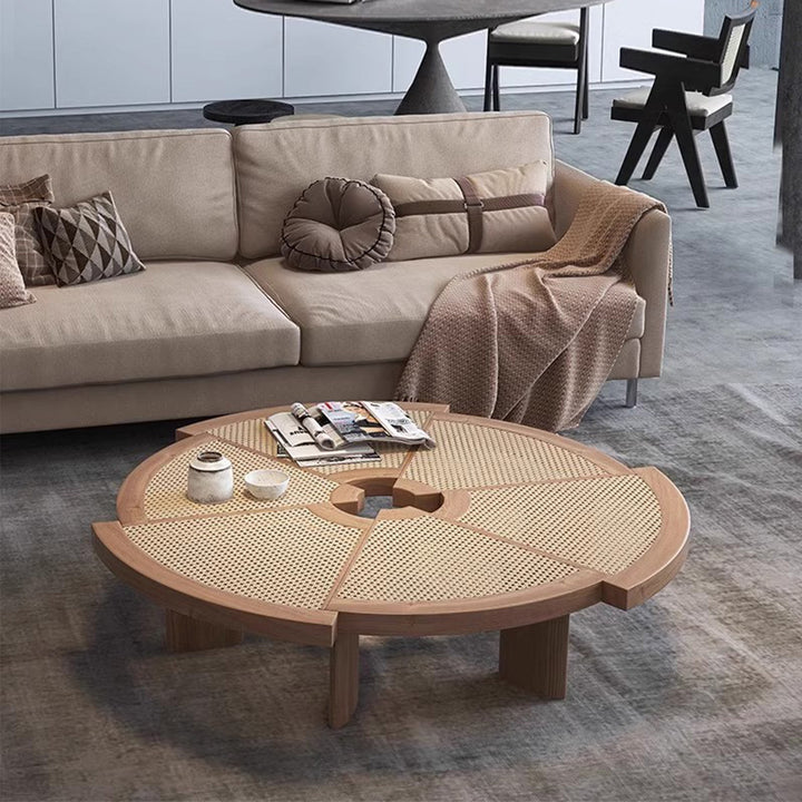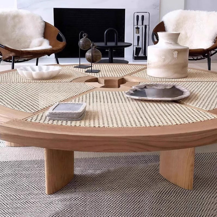 Elevate your outdoor space with our charming round rattan coffee table. Crafted with a sturdy and environmentally-conscious natural pine wood frame, and featuring a stylish rattan top, this versatile table seamlessly blends indoor and outdoor aesthetics, infusing your home with a natural touch.