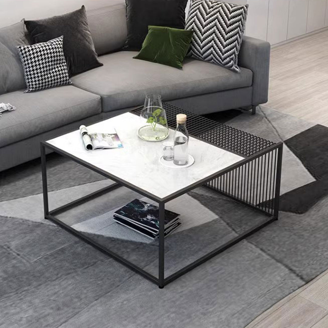 Elevate your space with a twist on rustic industrial design with this Minimalist Marble Metal Frame Coffee Table. The white marble top is meticulously paired with a metal frame structure, creating a clean and designer look that exudes modern sophistication.