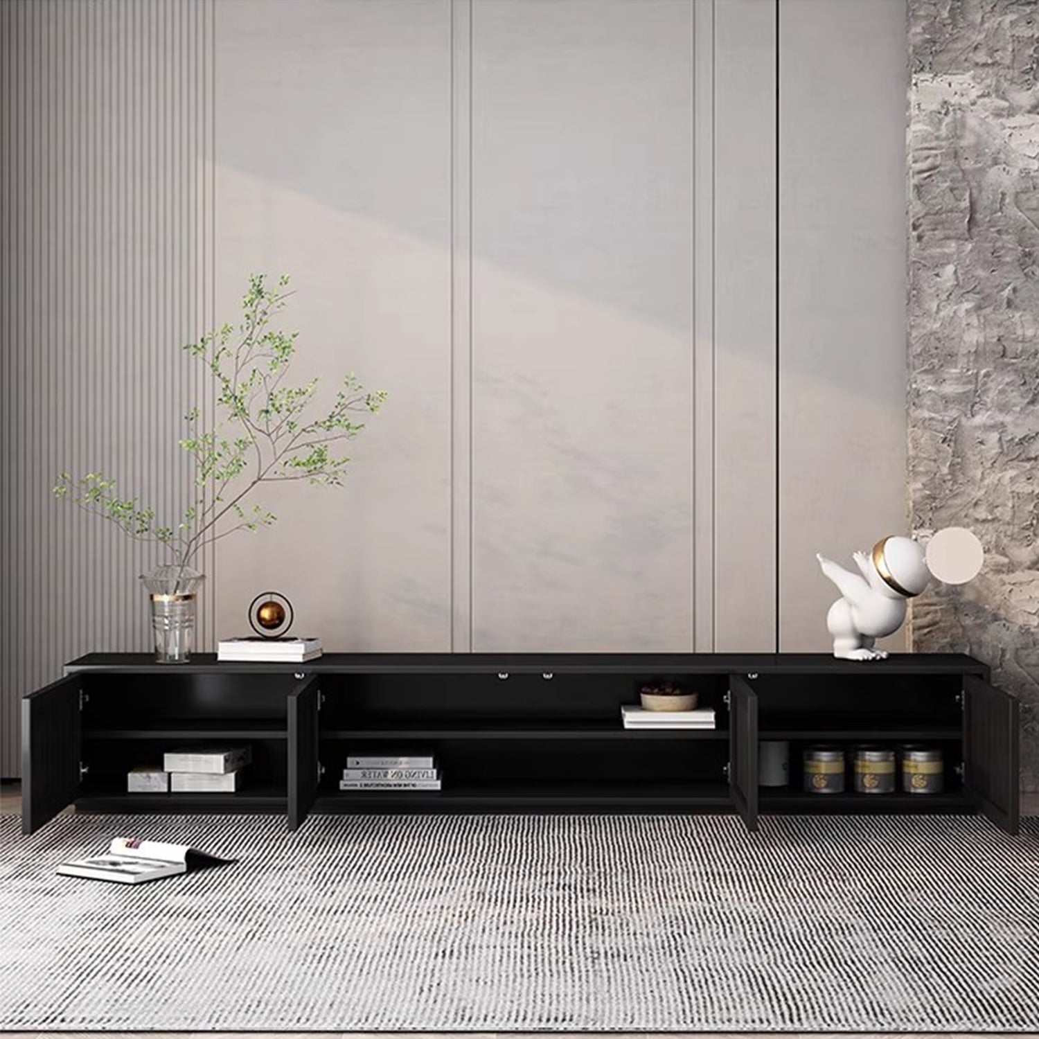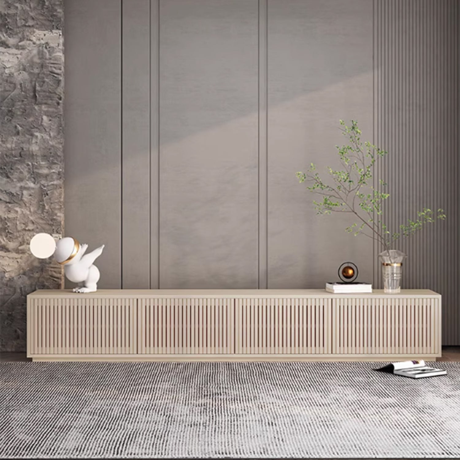 Crafted from quality pine wood in a matte finish, our BASQ TV cabinet features grilled door panels running along its entire length, adding a contemporary accent to a simple design. Whether you're aiming for a sleek and modern look or a bold, monochrome statement piece, this TV stand adapts to your placement and styles. Offering ample storage space for your media accessories, this console will be a perfect addition to any modern, minimalist, Hygge, or Hollywood inspired space.