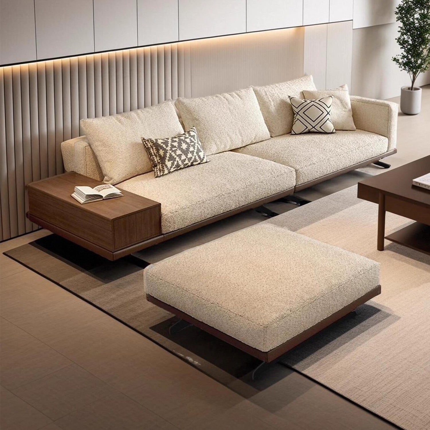 Enhance your living space with our MEANG modern fabric sofa, an impeccable fusion of wood and contemporary design. Its sleek and ultra-modern style instantly upgrades any modern or hotel-inspired interior aesthetics. With a strong pine wood internal structure, this couch is built to withstand the test of time. At one end, a side table replaces the armrest, providing convenient surface area for books and remote controllers. Whether placed in a living room or office lounge, this spacious couch offers the perfect balance of style and comfort, making it a stylish addition to any home or office.