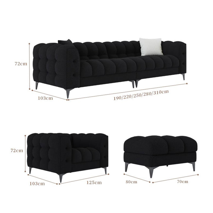 Elevate your living space with our Masdio modern boucle sofa. Meticulously crafted with a pine wood internal structure, high-density foam infill, and carbon steel legs, it guarantees both durability and comfort. Its contemporary style effortlessly blends into diverse interior settings, whether you lean towards classic, minimalist, or eclectic aesthetics. The Masdio Modern Boucle Sofa adapts to your preferences and styles, providing a practical and chic addition to your space. Revel in its versatility and timeless design, which infuses both comfort and sophistication into your room. It's the perfect choice for creating a cozy and stylish seating area, ideal for relaxation and gatherings alike.
