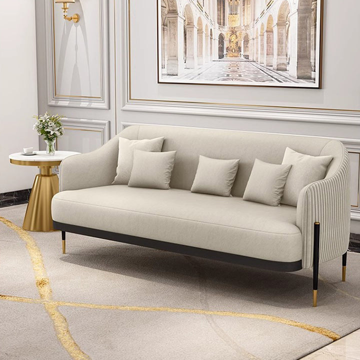 Revamp your living space or cafe with our Masdio Modern Leather couch. This contemporary sofa boasts a modern aesthetic, anchored by a sturdy iron frame for long-lasting durability. Its ribbed exterior exudes a luxurious vibe, while the plush seat guarantees comfort during extended seating. Elevate your living or commercial space with this sophisticated sofa design, and complement the look with our matching nesting coffee tables.