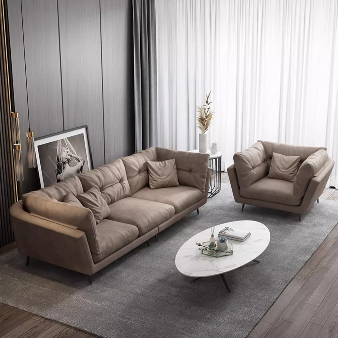 Experience modern comfort with our Masdio Modern Leathaire Sofa, featuring a high backrest for optimal back support. Enjoy the luxurious feel of plush back cushions and a seat that provides the ideal balance of softness and medium-firm support. Built with a durable pine wood internal structure and high-density foam infill, this sofa is upholstered in easy-to-maintain Leathaire, which mimics the texture of genuine leather. Perfect for both lounging and entertaining, this sofa embodies contemporary living and brings a cozy atmosphere to any modern, classic, or rustic interior.