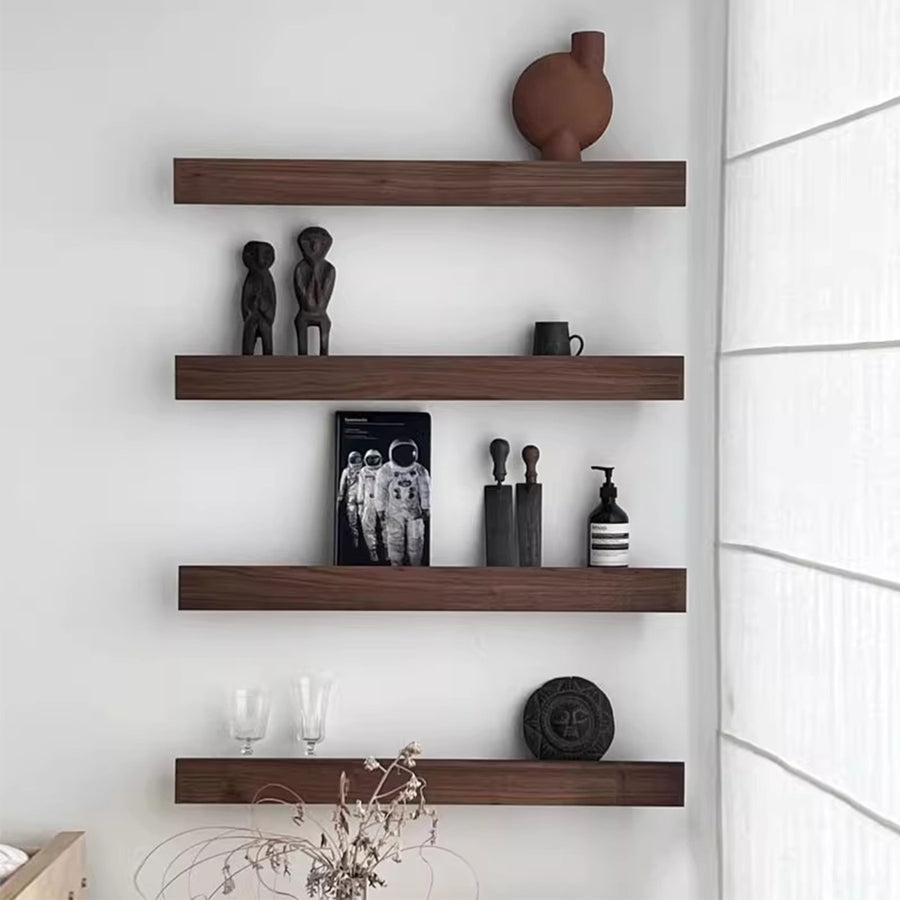 Add a touch of elegance to your home or office with our suspended KARLA shelf in a deep walnut finish. Its sleek and neat design creates a versatile space for display, storage, or decoration. Perfect for showcasing decorative items, books, or plants, this shelf adds a sophisticated element to any room. Its floating design gives the illusion of weightlessness, creating a sense of openness and airiness. Use it to create a display shelf, book nook, or decorative shelf that adds warmth and style to your space. The deep walnut finish adds a rich, luxurious touch that complements any modern, rustic, or industrial interior aesthetic.