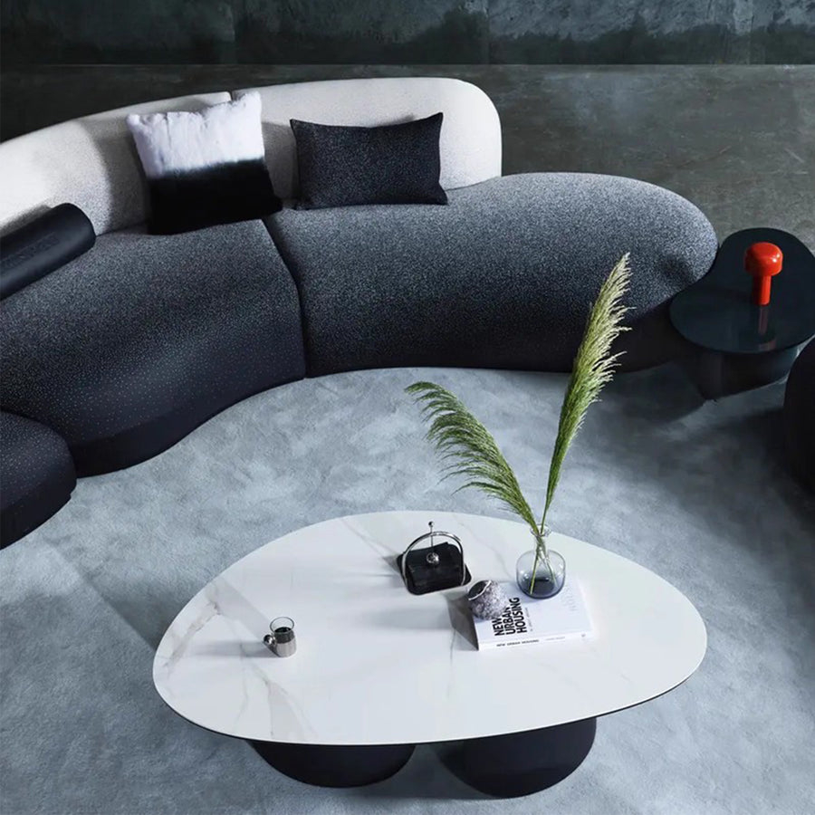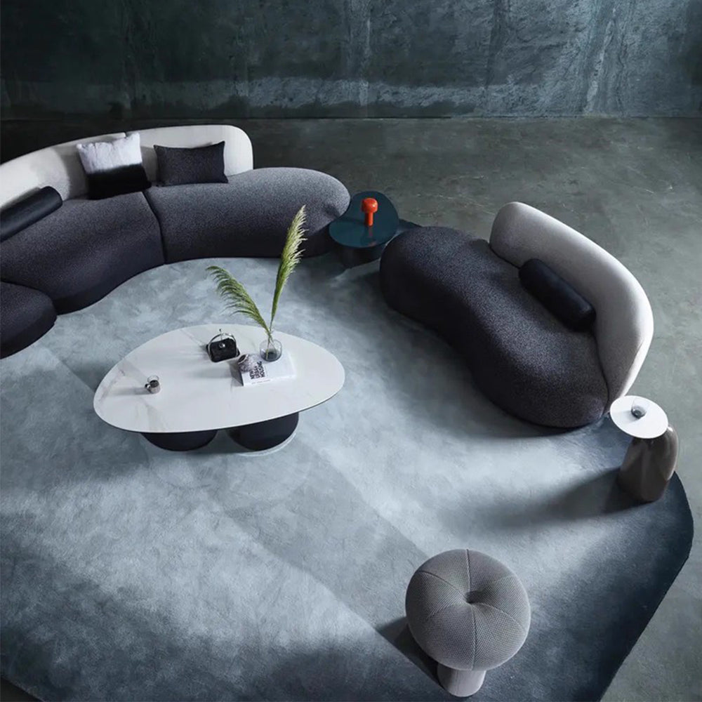A designer piece with a gently curved silhouette that breaks away from conventional sectionals, our BORDEUX pebble shaped sofa is both luxurious in design and functional in execution. Featuring a pebble shaped outline and upholstered in knitted stretch fabric, the sofa's ombre tones set the ambience for your contemporary living room or office lounge. An internal solid wood structure with high-density foam infill provides long-lasting support for your back.