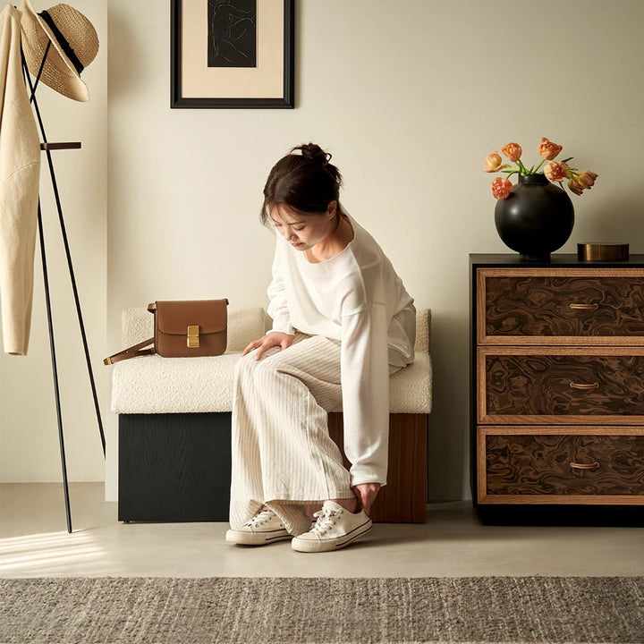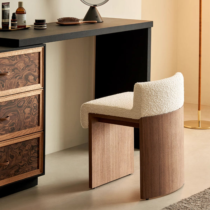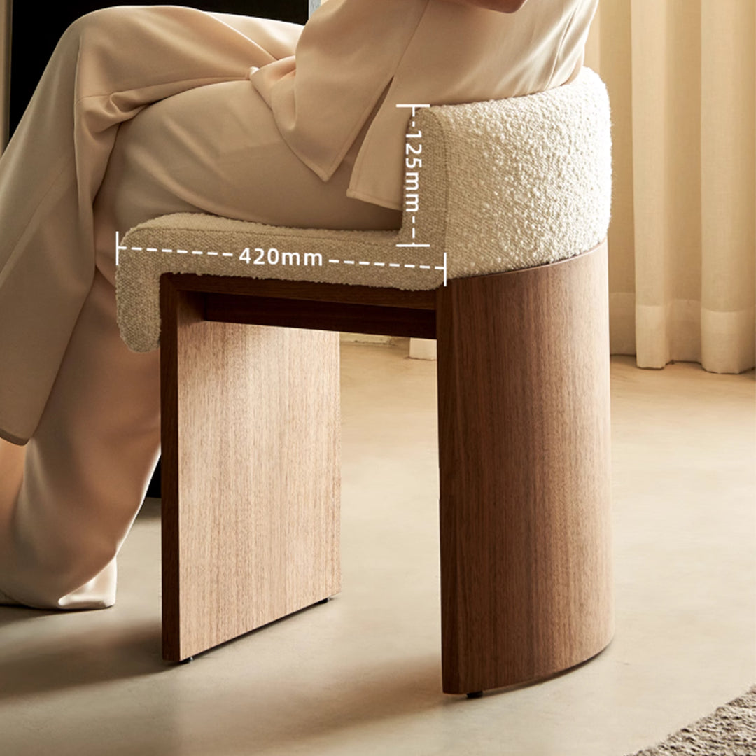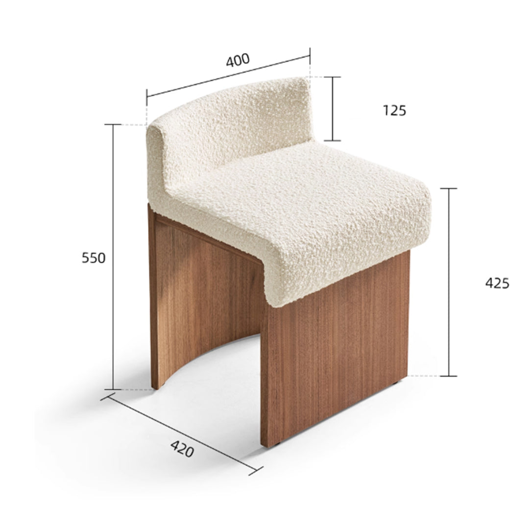 Our KOCS chair is crafted from long-lasting materials, with its frame built from pine wood and wrapped in textured boucle fabric. Its radical silhouette is a sight for sore eyes, offering both the organic beauty of natural wood and the textured visual interest of the fabric. The softly rounded seat ensures comfort while maintaining a modern aesthetic, and its sturdy frame offers reliable support for daily use in modern homes.