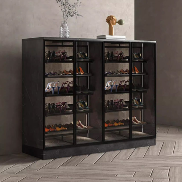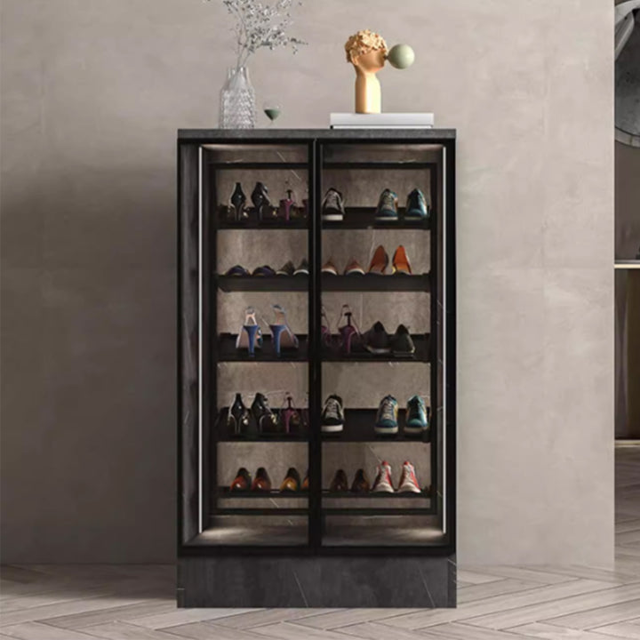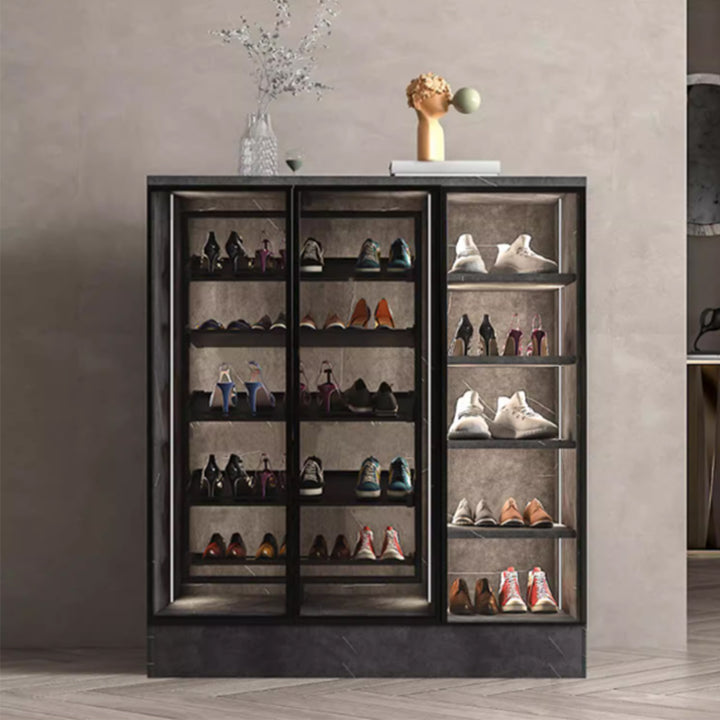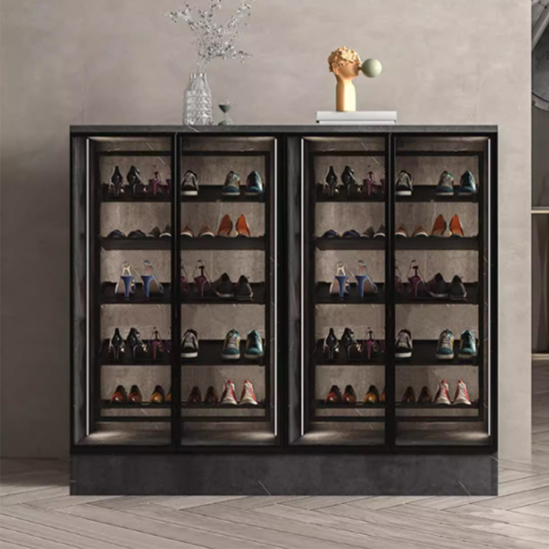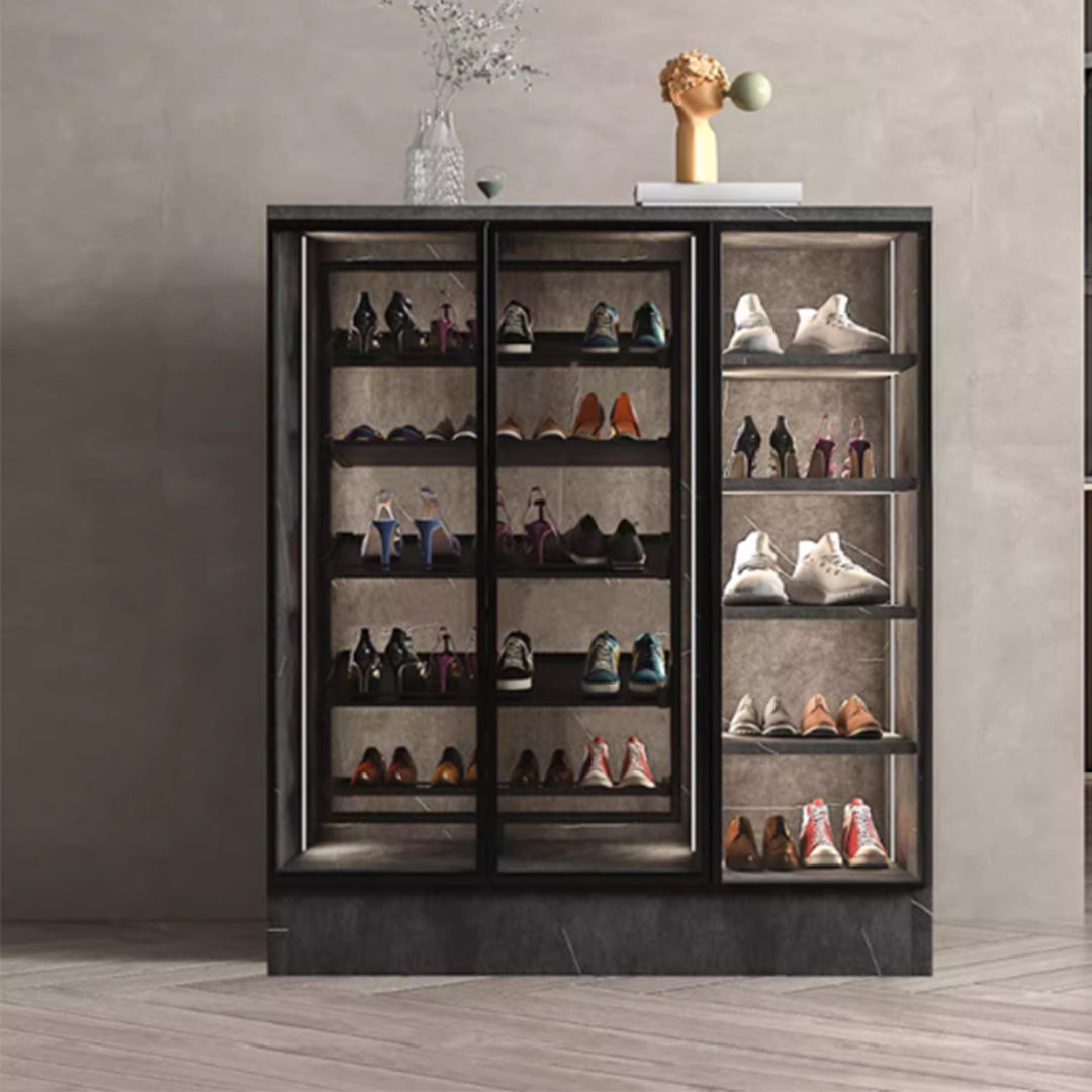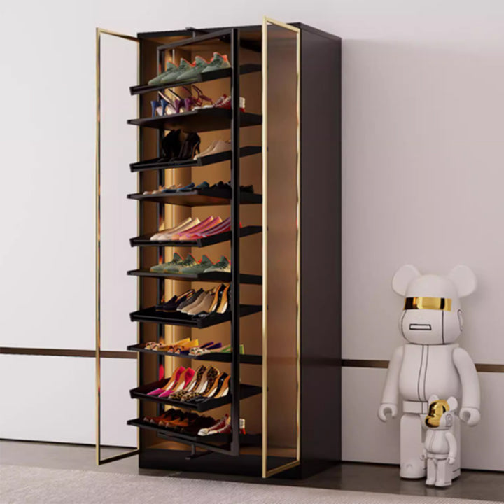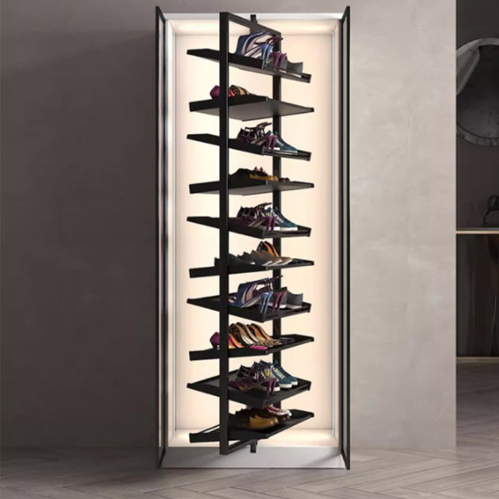 Display your favourite Nike kicks with our SHAYNE shoe cabinet, featuring a rotatable function that allows your shoes to be visable from every angle. Built from 3C tempered glass, iron, and aluminum alloy, this display rack ensures long-lasting strength and a sleek appearance. Its rotatable shelves provide easy access, and maximises storage while maintaining an organised space. An LED back light casts the limelight on your prized collection.