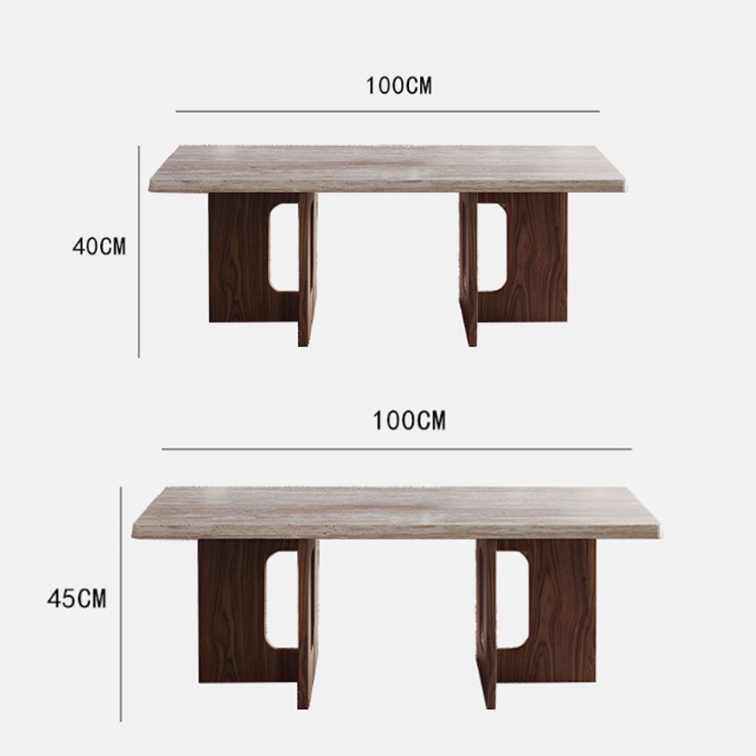 Our NUNE coffee table is crafted from natural travertine and premium wood, showcasing a sleek and spacious table top in earthy tones of stone. Its natural materials create a welcoming atmosphere for family gatherings and meals, while its beauty exemplifies hygiene philosophy. Pair the table with a curved boucle sofa for the complete wabi-sabi vibe.