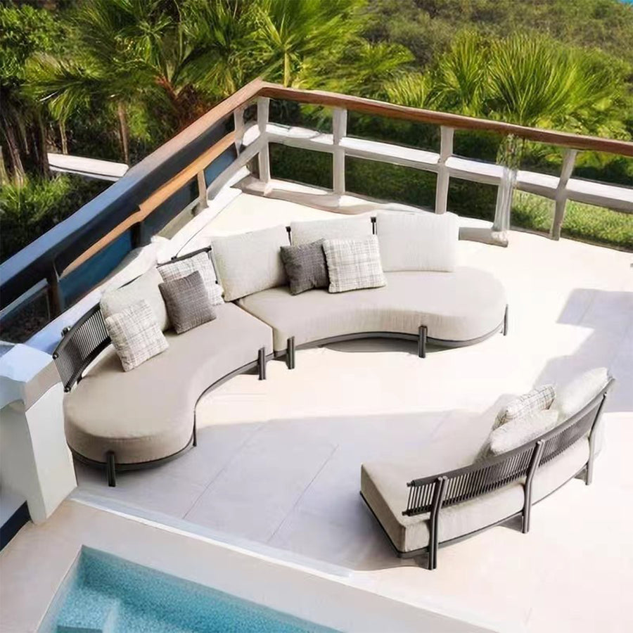 Introducing our Masdio pebble-shaped sofa, a designer piece that redefines conventional sectionals with its gently curved silhouette. Luxurious in design and functional in execution, this sofa boasts a unique pebble-shaped outline and is upholstered in knitted stretch fabric with ombre tones, setting the perfect ambience for minimalist, Japandi, or Wabi Sabi living rooms or office lounges. Its internal solid wood structure, paired with high-density foam infill, ensures long-lasting support for your back, promising both style and comfort.