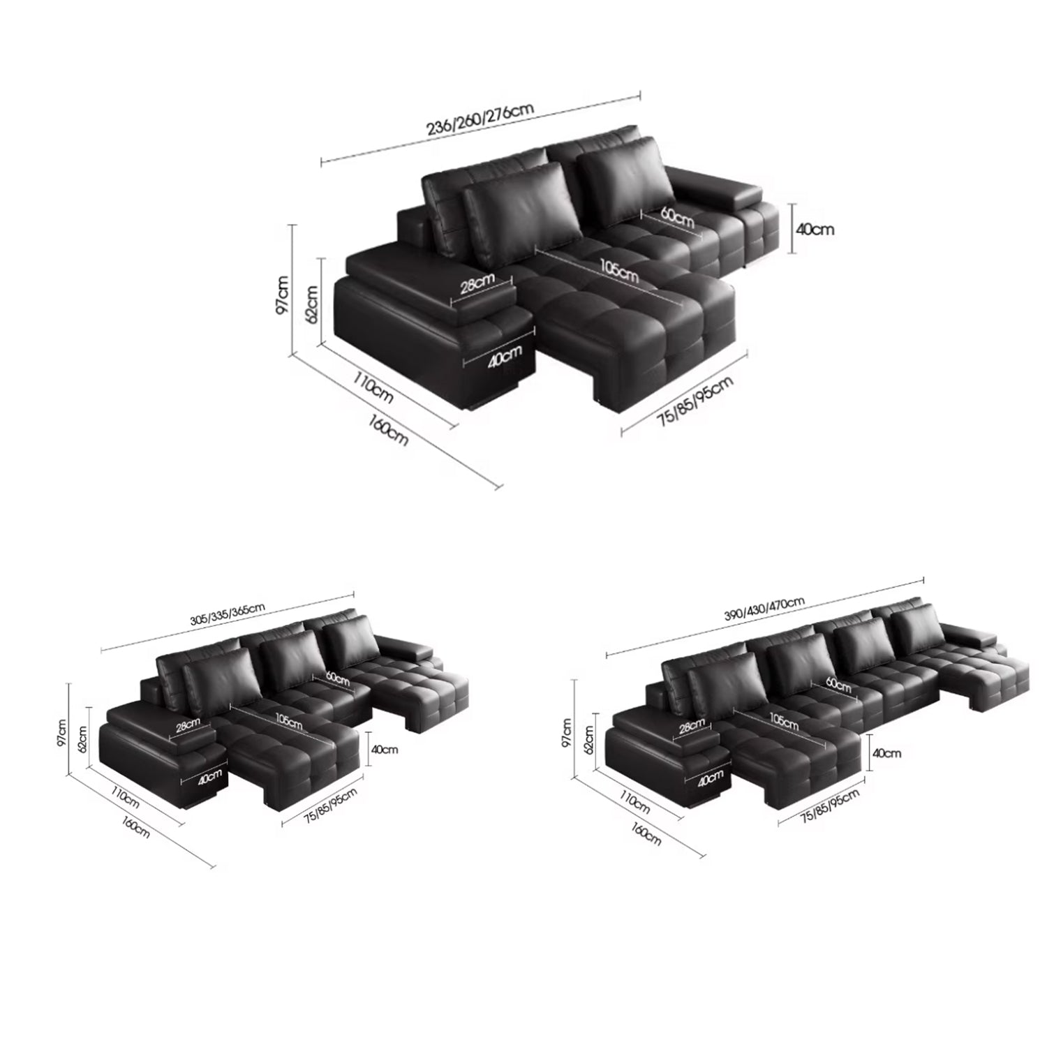 Bring luxury and comfort to your home with our BAETENS electric couch. Crafted from premium Italian genuine cowhide leather, this sofa bed features high-resilience foam cushions for optimal comfort. Its sturdy construction includes a pine wood internal structure, high-density foam infill, and a reliable Germany Okin silencing mechanism. The electric motorized chaise provides effortless adjustment, making it perfect for relaxation and entertainment.